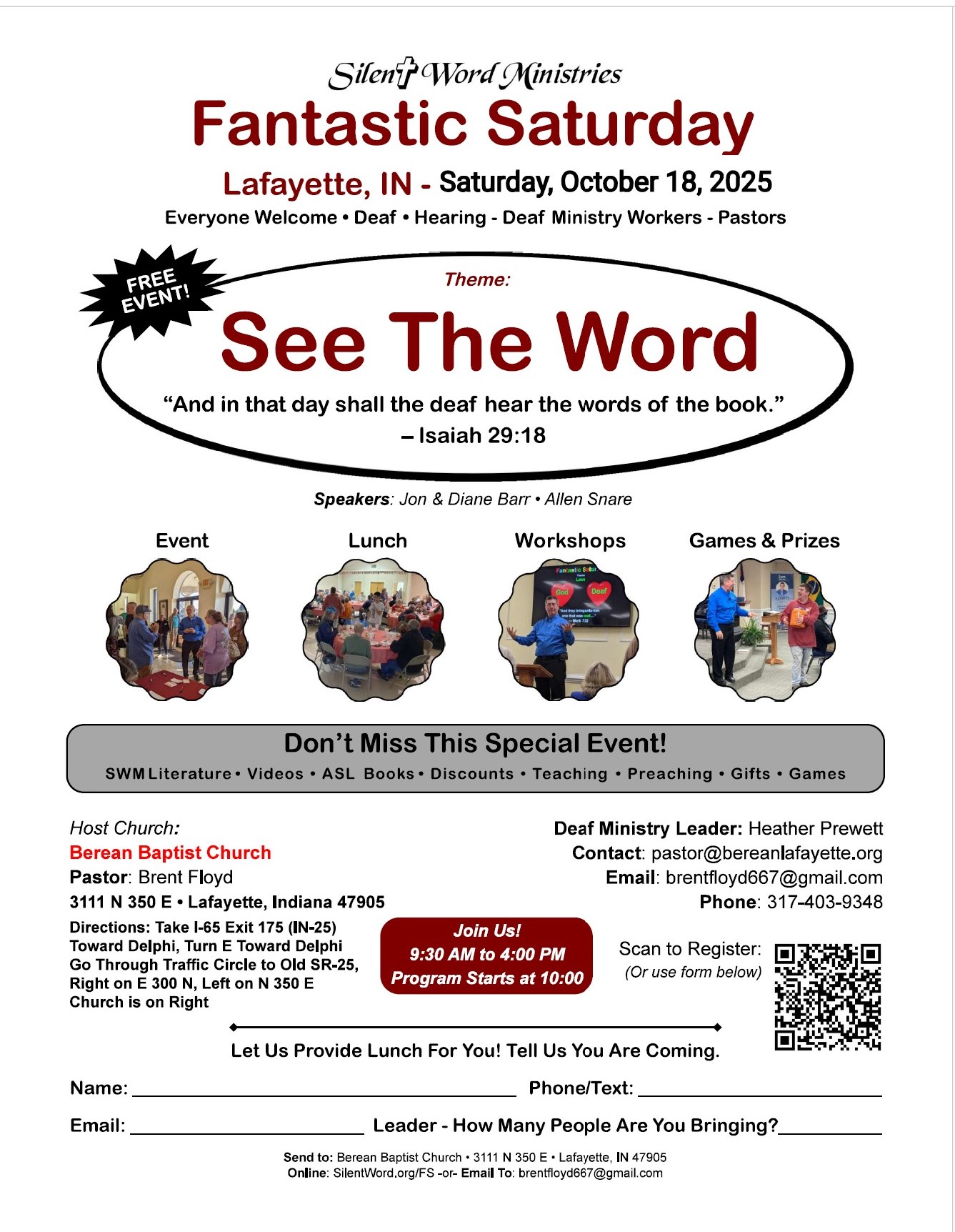 Fantastic Saturday - Deaf Community Outreach - 9:00 a.m. - 5:00 p.m. (Volunteer sign-up on table)