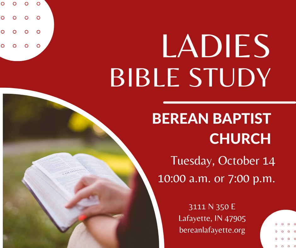 Ladies Bible Study at the church - 10:00 a.m. & 7:00 p.m.